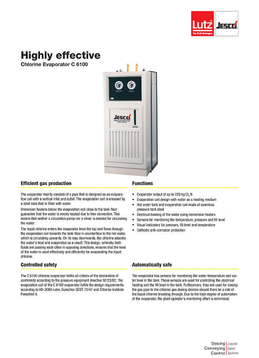 Chlorine Evaporator C 6100 Lutz-Jesco
