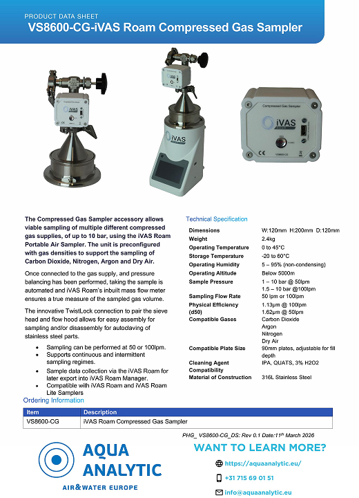 VS8600 CG — iVAS Roam Compressed Gas Sampler