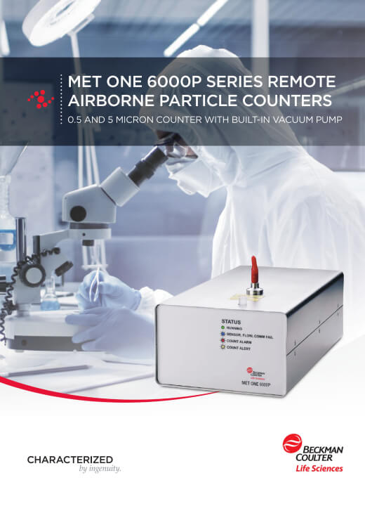 MET ONE 6000 air particle counters are a compact design with flexible sizing, flow rate and communication options that address the specific needs of cleanroom environments within the pharmaceutical, semiconductor, hard disk drive and flat panel display industries providing ISO 21501 accuracy for continuous particle monitoring. Reduce initial installation cost with MET ONE 6000P remote air particle counter’s integrated multi-parameter measurements.