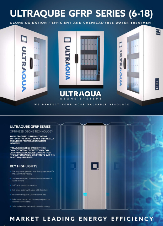 The ULTRAQUBE is the only ozone system in the world that is specifically engineered for the aquaculture industry. It features energy-efficient high-concentration ozone technology, designed as a scalable concept that fits customization over time to suit the exact requirements.