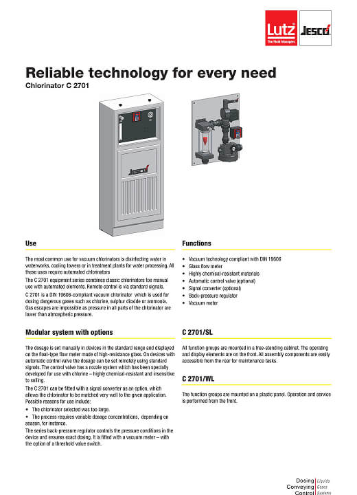 Vacuum Chlorinator C 2701 Lutz-Jesco (2.0-200.0 kg/h)